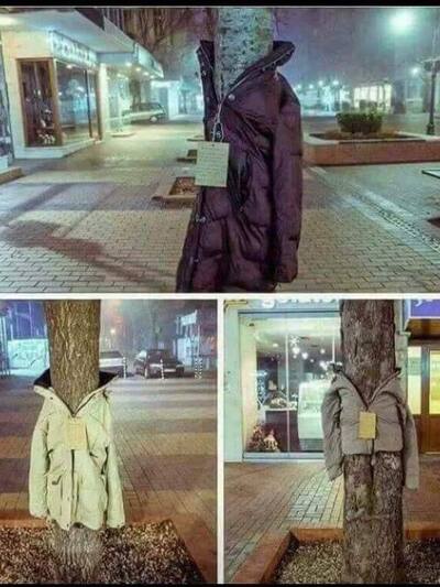 Το κάλεσμα ήρθε μέσα από τα social media. Όσοι πολίτες έχουν μπουφάν που δεν χρειάζονται καλούνται να … ντύσουν ένα δένδρο στο κέντρο της πολης αναγράφοντας στο καρτελάκι το μήνυμα «φόρεσέ το» και το νούμερο του ρούχου. Έτσι οι άνθρωποι που δεν έχουν τρόπο να προστατευτούν από το κρύο και δεν έχουν τη δυνατότητα να απευθυνθούν σε κάποια δομή θα το πάρουν και θα το φορέσουν τις κρύες μέρες και νύχτες του χειμώνα.