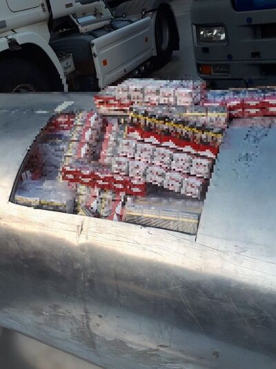 Κατόπιν καταμετρήσεως της ανωτέρω ποσότητας τσιγάρων εντοπίστηκαν συνολικά εννέα χιλιάδες πενήντα τρεις (9.053) κούτες τσιγάρων, ήτοι ενενήντα χιλιάδες πεντακόσια τριάντα (90.530) πακέτα ήτοι ένα εκατομμύριο οκτακόσιες δέκα χιλιάδες εξακόσια (1.810.600) τσιγάρα, διάφορων επωνυμιών, για τα οποία δεν διέθετε νόμιμα παραστατικά κατοχής και διακίνησης.