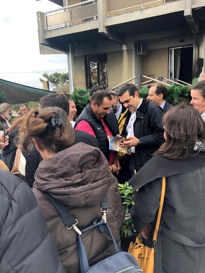 Ο Πρωθυπουργός, Αλέξης Τσίπρας, επισκέφθηκε σήμερα το πρωί τις πυρόπληκτες περιοχές στο Μάτι, συνοδευόμενος από τον Υπουργό Μεταφορών και Υποδομών, Χρήστο Σπίρτζη. Ο Πρωθυπουργός συμμετείχε σε δίωρη σύσκεψη με εκπροσώπους των συντονιστικών επιτροπών των κατοίκων, με τους οποίους συζήτησε διεξοδικά όλα τα προβλήματα που αντιμετωπίζουν μετά τις πυρκαγιές.