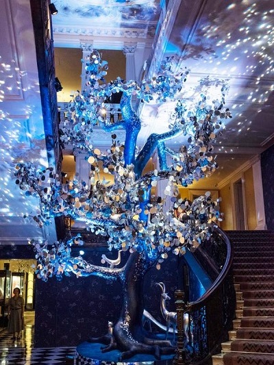 «Αποκαλύφθηκε» το φετινό χριστουγεννιάτικο δέντρο του Claridge’s, του εμβληματικού, κλασικού ξενοδοχείου στο Mayfair του Λονδίνου, το οποίο τα τελευταία χρόνια διακοσμούν διάσημοι σχεδιαστές. Αυτή τη φορά, με τη σφραγίδα της μεγάλης κυρίας της αμερικάνικης μόδας Diane Von Furstenberg παρουσιάστηκε ένα δέντρο μη παραδοσιακό: Τιτλοφορείται «Tree of Love», έχει ύψος έξι μέτρα και βασίζεται σε σχέδια αρχαίων πολιτισμών. Μας θυμίζει περισσότερο παραστάσεις ασιατικής κουλτούρας και «λούζεται» από μπλε και λευκό φως.