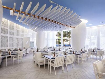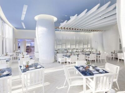 Έκπληξη αποτελεί και το όνομα του εστιατορίου, το οποίο είναι ελληνικό και ονομάζεται «Ατλαντικός». Στο εστιατόριο μπορεί κανείς να απολαύσει την ελληνική κουζίνα, ειδικά στο πρωινό, αλλά και την ασιατική, καθώς το μενού έχει επιρροές από Ιαπωνία.