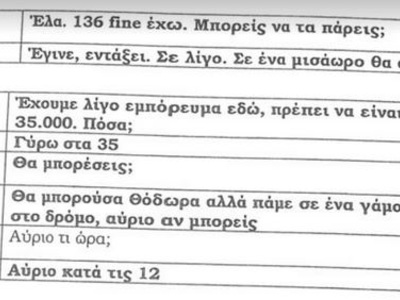 Σύμφωνα με την έρευνα των αστυνομικών ο τζίρος των δυο κυκλωμάτων ήταν περίπου 400.000 ευρώ την ημέρα. Μόνο για τα… έξοδα κίνησης τα ποσά υπολογίζονται σε 100.000 ευρώ την ημέρα. Στους παρακάτω διαλόγους των φερόμενων ως μελών των κυκλωμάτων η αναφορά σε “γραμμές” έχει να κάνει με χιλιάδες ευρώ και κάπως έτσι μόνο για δυο συναλλαγές τα ποσά που ακούγονται είναι περίπου 30.000 ευρώ.