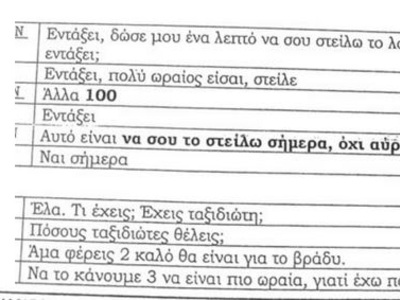 Στους παρακάτω διαλόγους με τον όρο “fine” οι κατηγορούμενοι αναφέρονται σε χρυσό 24 καρατίων, ενώ με τον όρο “ταξιδιώτης” αναφέρονται σε ασυνόδευτο πακέτο με χρυσό που μεταφερόταν παράνομα από Αθήνα προς Κωνσταντινούπολη με τουριστικά λεωφορεία. Τα ποσά σε κάθε αποστολή η ανταλλαγή είναι τεράστια.