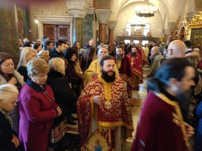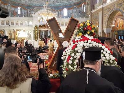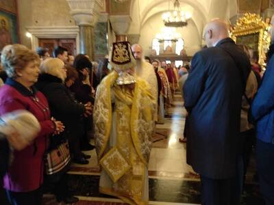 Λίγο μετά τις 11.20 ολοκληρώθηκε με το κήρυγμα του Μητροπολίτη Πατρών Χρυσόστομου η Θεία Δοξολογία και άρχισε η έξοδος των επιστήμων και των πιστών απο το ναό για να ξεκινήσει η λιτανεία.