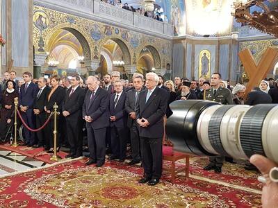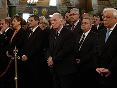 Η Θεία Δοξολογία ξεκίνησε μόλις κατέφθασε στην εκκλησία και ο πρόεδρος της Ελληνικής Δημοκρατίας Προκόπης Παυλόπουλος.