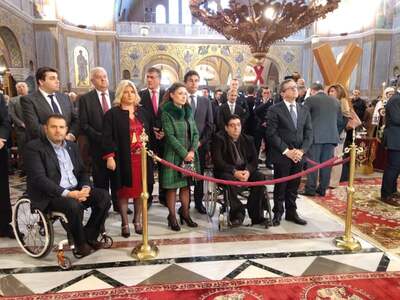 Λίγο πριν τις 10.30 ξεκίνησε η προσέλευση των επισήμων στον Ιερο Ναό του Αγίου Ανδρέα Πατρών. Πρώτος κατέφθασε ο Δήμαρχος Πατρέων Κώστας Πελετίδης και λίγα λεπτά μετά ακολούθησε ο πρόεδρος του ΚΙΔΗΣΟ, Γιώργος Παπανδρέου. Στην εκκλησία κατέφθασαν και ο Περιφερειάρχης Δυτικης Ελλάδς Απόστολος Κατσιφάρας , συνοδευόμενος από τον Αντιπεριφερειάρχη Αχαϊας Γρηγόρη Αλεξόπουλο