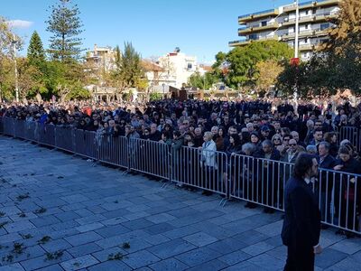 Μετά τη Θεια Δοξολογία που ολοκληρώθηκε με το κήρυγμα του Μητροπολίτη Πατρών Χρυσόστομου λίγο μετά τις 11.20, ακολούθησε η λιτανεία.