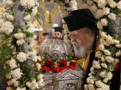 Ἐπίσης καθηκόντως μεταφέρω τάς εὐχάς τοῦ Μακαριωτάτου Ἀρχιεπισκόπου Ἀθηνῶν καί Πάσης Ἑλλάδος κ.κ. Ἱερωνύμου καί τῆς Ἱερᾶς Συνόδου τῆς Ἐκκλησίας τῆς Ἑλλάδος πρός ἃπαντας ἐπί τῇ εὐσήμῳ ταύτῃ ἑορτῇ καί πανηγύρῃ.