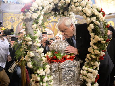 Παρακαλοῦμεν τόν Ἃγιον Ἀπόστολον Ἀνδρέαν ἳνα ἐνισχύῃ τήν Ὑμετέραν Ἐξοχότητα εἰς τό ὑψηλόν καί πολυεύθυνον αὐτῆς ἒργον καί φωτίζῃ καί διαφυλάττῃ αὐτήν ἐν ὑγίειᾳ κατ’ ἂμφῳ πρός εὒκλειαν τῆς φιλτάτης ἡμῶν Πατρίδος.