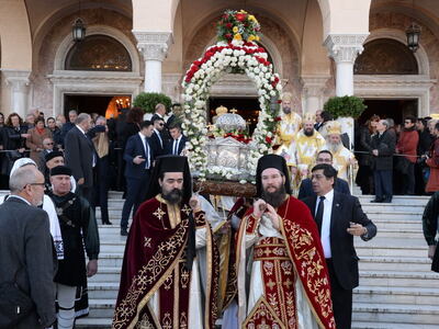 Πλήθος πιστών κατέκλυσε και σήμερα τους πανηγυρίζοντες ιερούς ναούς του Αγίου Ανδρεά στην Πάτρα (νέο και παλαιό), ενώ οι θρησκευτικές εκδηλώσεις για τον πολιούχο κορυφώθηκαν σήμερα με την πολυαρχιερατική θεία λειτουργία, τη δοξολογία και τη λιτανεία.