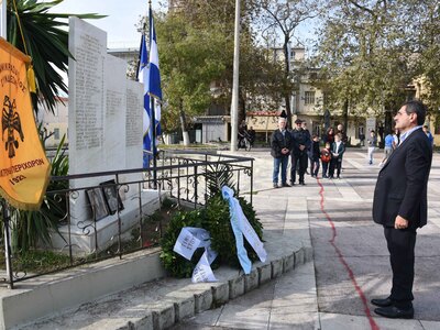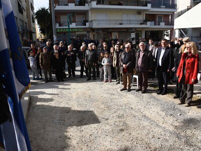 Στεφάνια κατέθεσαν ο Δήμαρχος Πατρέων, Κώστας Πελετίδης, εκπρόσωποι της Πανελλήνιας Ένωσης Αγωνιστών Εθνικής Αντίστασης και Δημοκρατικού Στρατού Ελλάδας –Παράρτημα Πάτρας, του ΚΚΕ, της ΚΝΕ, του Παμμικρασιατικού Συνδέσμου, του Συλλόγου Πέτρινα Χρόνια, εκπρόσωποι Συλλόγων της περιοχής και της δημοτικής παράταξης ΡΑΠ, ενώ παρέστη και η επικεφαλής της παράταξης «Όλοι μαζί για την Πάτρα», Βίβιαν Σαμούρη.