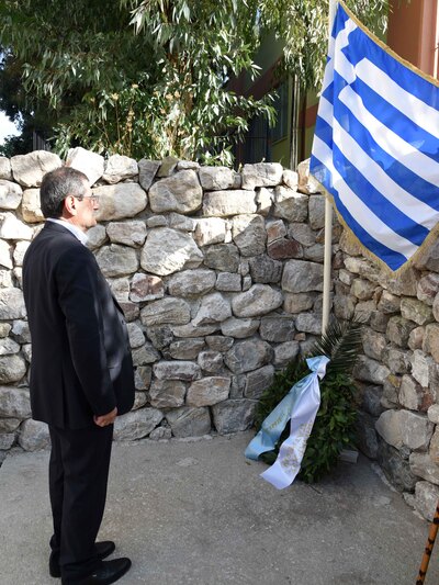 Στον τόπο της εκτέλεσης απέναντι από τα γραφεία του Ανατολικού Διαμερίσματος στο λιτό μνημείο που διαμορφώθηκε δίπλα στον προαύλιο χώρο του σχολικού συγκροτήματος, πραγματοποιήθηκε η εκδήλωση μνήμης, που διοργανώθηκε από τη Δημοτική Αρχή και το Ανατολικό Διαμέρισμα.