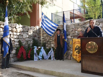 Η εκδήλωση έκλεισε με ομιλία από τον Αντιπρόεδρο του Ανατολικού Διαμερίσματος, Βασίλη Ζώτο, ο οποίος αναφέρθηκε στους αγωνιστές που εκτελέστηκαν στο συγκεκριμένο σημείο από τα Ναζιστικά κατοχικά στρατεύματα την περίοδο 1941-1944 και τόνισε μεταξύ άλλων: «Όπως είχαμε δεσμευτεί προχωράμε σ’ αυτόν τον τόπο εκτέλεσης, στην ανέγερση μνημείου πεσόντων σαν ελάχιστο φόρο τιμής στους ηρωικούς νεκρούς του λαού μας».