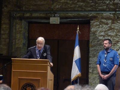Την ανώτατη τιμητική διάκριση των Ελλήνων Προσκόπων, το Παράσημο του Αργυρού Φοίνικα, απένειμε χθες το απογευμα το διοικητικό Συμβούλιο του Σώματος Ελλήνων Προσκόπων μετά από σχετική απόφασή του, στον ομότιμο καθηγητή Εφαρμοσμένων Μαθηματικών του Πανεπιστημίου Πατρών και μέλος της Ακαδημίας Αθηνών κ. Γιώργο Δάσιο και στον φυσικό και αστρονόμο, επίτιμο διευθυντή του Ευγενιδείου Πλανηταρίου κ. Διονύση Σιμόπουλο, για τις διακεκριμένες και εξέχουσες υπηρεσίες που προσέφεραν στην Προσκοπική Κίνηση και την κοινωνία.