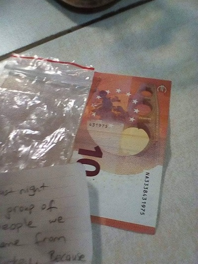«Ήταν γραμμένο στα αγγλικά, πήγα σε γείτονα να μου το μεταφράσει, απόρησα που είδα έναν λευκό φάκελο και η έκπληξή μου ήταν ακόμη μεγαλύτερη όταν είδα μέσα τα 10 ευρώ», δήλωσε στο Ράδιο Θεσσαλονίκη ο Δημήτρης Καζαντζής ιδιοκτήτης του καφενείου.