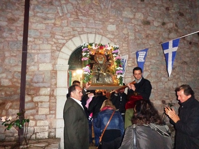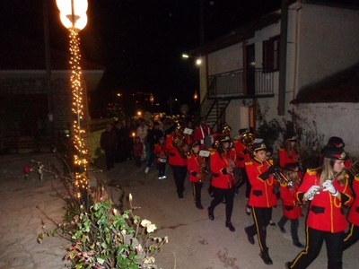 Εν συνεχεία ακολούθησε η περιφορά της ανθοστολισμένης Ιερής Εικόνας του Αγίου Νικολάου στους κεντρικούς δρόμους του όμορφου χωριού μας, υπό τη συνοδεία της Φιλαρμονικής Ορχήστρας του Δήμου Καλαβρύτων.
