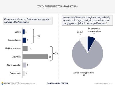 Το 73% κρίνει αρνητικά και μάλλον αρνητικά τη δράση του «Ρουβίκωνα» και το 83% δεν θα τον ψήφιζε ποτέ αν κατέβαινε στις εκλογές ως πολιτικό κόμμα.