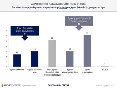 Αξιολογώντας την κατάσταση της περιοχής τους, το 46% απαντά ότι τα πράγματα τον τελευταίο καιρό έχουν χειροτερέψει λίγο.