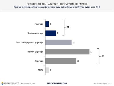 Το 63% των ερωτηθέντων εκτιμά ότι η κατάσταση της ΕΕ για το 2019 θα είναι χειρότερη ή μάλλον χειρότερη σε σχέση με το 2018.