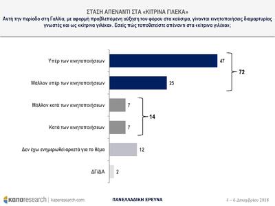 Το 72% είναι υπέρ και μάλλον υπέρ των κινητοποιήσεων των Κίτρινων Γιλέκων στη Γαλλία.