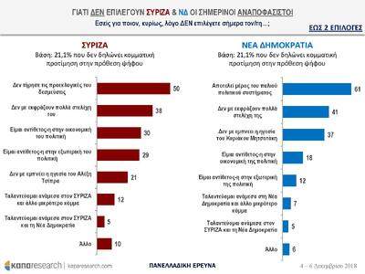 Στη βάση αυτή του 21,1% γίνεται προσπάθεια να ανιχνευτούν οι λόγοι για τους οποίους οι σημερινοί αναποφάσιστοι δεν επιλέγουν τον ΣΥΡΙΖΑ και τη ΝΔ.