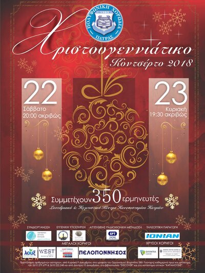 Χορηγοί επικοινωνίας: ΠΕΛΟΠΟΝΝΗΣΟΣ, TRIP, Η ΓΝΩΜΗ, ΑΛΛΑΓΗ, ΚΟΣΜΟΣ, ΣΥΜΒΟΥΛΟΣ ΕΠΙΧΕΙΡΗΣΕΩΝ, ΑΧAΪΚΟΣ ΤΥΠΟΣ, NAYΠΑΚΤΙΑ PRESS,PATRASEVENTS.gr, pelop.gr,, TEMPO24.gr, PATRAStv, ACHAIANEWS.gr, dete.gr, gnomip.gr, imerisios.gr, ΕΡΤ ΠΑΤΡΑΣ, ΑΝΤ1-REALFMRadioPatras 105.3, MAXFM 93.4, ΑΝΟΙΞΗ FM100.7, Lepantoradio 101.4, Ρ/Σ Παν/μίου ΠΑΤΡΩΝ upFM, OXYGENEFM 95.3, Ραδιοφωνικός Σταθμός Ι.Μ. ΠΑΤΡΩΝ, ΙΟΝΙΑΝ, BESTTV ΑΧΑΙΑΣ, LEPANTO, ΛΥΧΝΟΣ, Διαδικτυακό κανάλι Παν/μίου Πατρών UpWebTv.