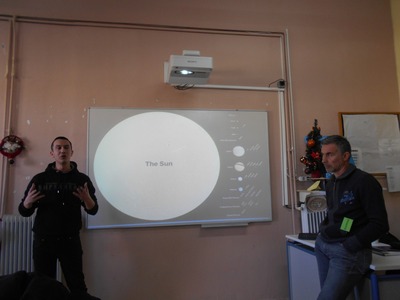 «Συγκεκριμένα, οι εκπαιδευόμενοι και οι εκπαιδευτικοί του 2ου Σχολείου Δεύτερης Ευκαιρίας Πάτρας είχαν τη χαρά να φιλοξενήσουν στο χώρο του Σχολείου το Διδάκτορα Αστροφυσικής κ. Λάζαρο Κουτουλίδη και το Διδάκτορα Αστρονομίας κ. Βαγγέλη Κολοκοτρώνη, οι οποίοι με ιδιαίτερα εύγλωττο τρόπο παρουσίασαν το μαγικό κόσμο του σύμπαντος, αναφέρθηκαν αναλυτικά στις διαστάσεις του ηλιακού συστήματος και των πλανητών, στις αποστάσεις που χωρίζουν τους πλανήτες μεταξύ τους, την ταχύτητα του φωτός, καθιστώντας ιδιαίτερα δύσκολες  έννοιες προσιτές.