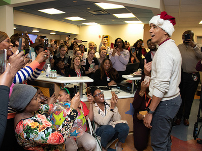 Άγιος Βασίλης ντύθηκε ο πρώην Πρόεδρος των Ηνωμένων Πολιτειών Αμερικής, Μπάρακ Ομπάμα. Επισκέφτηκε ένα νοσοκομείο Παίδων στην Ουάσινγκτον, προκαλώντας ενθουσιασμό σε παιδιά, γονείς και νοσηλευτικό προσωπικό.