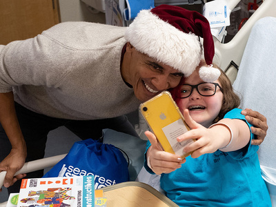 Φόρεσε τον σκούφο του, πήρε τον σάκο του, μοίρασε τα δώρα του... και φωτογραφήθηκε με χαμόγελο με τους μικρούς ασθενείς!