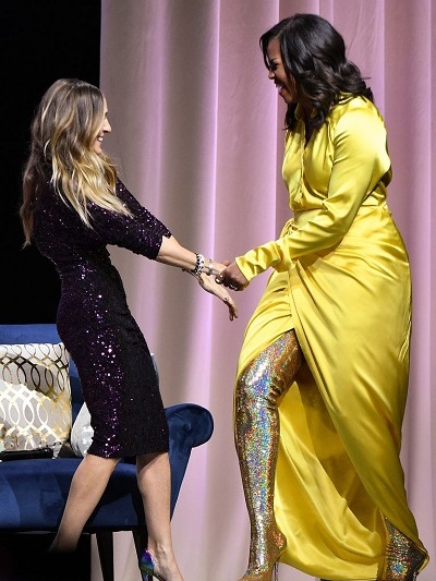Ηταν ένα outfit που κανείς δεν περίμενε από πρώτη κυρία των ΗΠΑ, έστω και πρώην. Η Μισέλ Ομπάμπα που στα χρόνια της προεδρικής θητείας του συζύγου της ανανέωσε καθοριστικά τα ενδυματολογικά ήθη στο Λευκό Οίκο, φαντάζει ακόμα πιο απελευθερωμένη στυλιστικά στην περιοδεία προώθησης του πολύκροτου, βιογραφικού βιβλίου της Becoming, το οποίο σημειώνει ρεκόρ πωλήσεων παγκοσμίως.