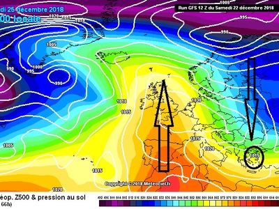 Πιο συγκεκριμένα, η ανατολική-βορειοανατολική επέκταση του Αζορικού αντικυκλώνα προς την δυτική -βορειοδυτική και κεντρική Ευρώπη σε συνδυασμό με την ταυτόχρονη ενίσχυση του πολικού αεροχείμαρρου (jet stream) σε άξονα βορρά-νότου θα έχει σαν αποτέλεσμα την κάθοδο κρύων αερίων μαζών προς την ανατολική Ευρώπη και κατ' επέκταση και στην ευρύτερη περιοχή των Βαλκανίων συμπεριλαμβανομένης και της χώρας μας προκαλώντας αισθητότατη πτώση της θερμοκρασίας ανήμερα των Χριστουγέννων από βορρά προς νότο. Η πτώση αυτή θα συνδυαστεί και με ένα αβαθές βαρομετρικό χαμηλό στην τροπόσφαιρα άνωθέν μας και έτσι φαινόμενα θα απασχολήσουν το μεγαλύτερο τμήμα της Ελλάδας.