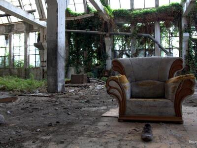 Η εικόνα σήμερα μετά από δεκαετιες αποβιομηχάνισης της Πάτρας. Η πολυθρόνα, απομεινάρι μιας εποχής .