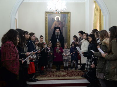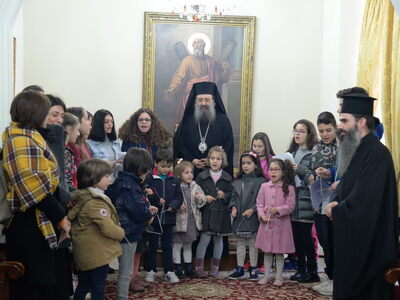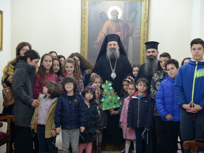 Από χαρούμενες παιδικές φωνές γέμισε σήμερα παραμονή Χριστουγέννων το Επισκοπείο της Πάτρας. Τα παιδιά τραγούδησαν τα κάλαντα στον Μητροπολίτη Πατρών "καί μετέφεραν μέ τόν δικό τους τρόπο τό μήνυμα τῆς μεγάλης Δεσποτικῆς ἑορτῆς τῶν Χριστουγέννων, αναφέρει η ανακοίνωση της Μητρόπολης. Τά κάλαντα, ἐνώπιον τοῦ Σεβασμιωτάτου Μητροπολίτου Πατρῶν κ.κ. Χρυσοστόμου, ἔψαλαν :