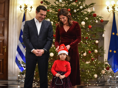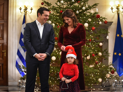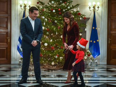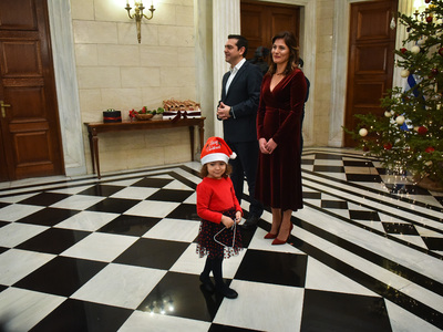 Με παιδικές φωνές και χαμόγελα πλημμύρισε σήμερα το Μέγαρο Μαξίμου. Ο Αλέξης Τσίπρας και η Μπέττυ Μπαζιάνα υποδέχθηκαν τα παιδιά από το μουσικό Γυμνάσιο και Λύκειο Αλίμου που τους είπαν τα Κάλαντα.