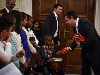 Αφού τραγούδησαν, τα παιδιά με τον πρωθυπουργό πέρασαν στην αίθουσα συσκέψεων, όπου τα ρώτησε τι θέλουν να γίνουν όταν μεγαλώσουν. «Δασκάλα» απάντησαν τρία κορίτσια, ενώ ένας συμμαθητής τους είπε ότι θέλει να φτιάχνει αεροπλάνα και οι δίδυμες Λακίσα και Λατίφα, ντυμένες στα κόκκινα, πληροφόρησαν τον Αλ. Τσίπρα ότι μιλούν και σουαχίλι.
