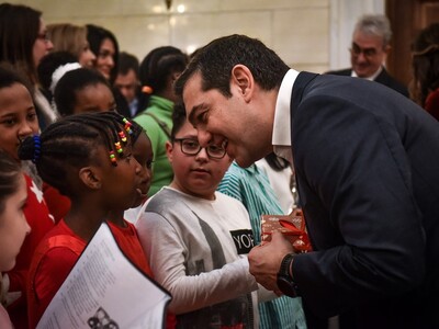 Τραγούδια και φωνές πλημμύρισαν το χώρο, ενώ ήταν ιδιαίτερα... ανυπόμονα να σκίσουν το περιτύλιγμα από τα δώρα που τους χάρισε ο πρωθυπουργός, να πάρουν τα γούρια και τα γλυκά που περιέφερε από παιδί σε παιδί η Μπέττυ Μπαζιάνα.