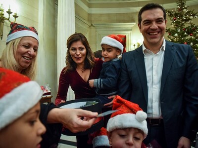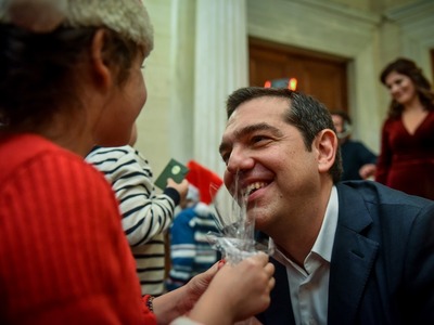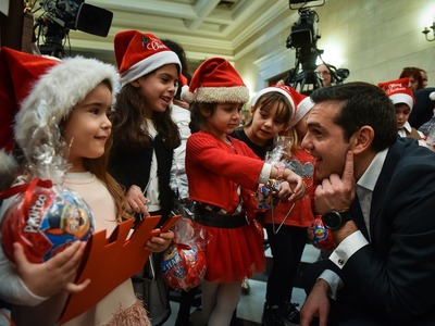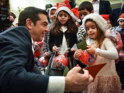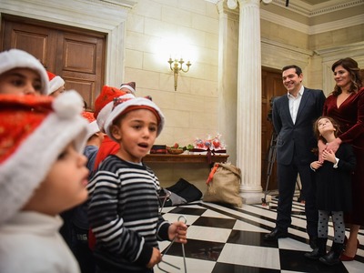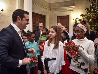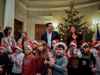Από παιδικές φωνές, χαμόγελα και χριστουγεννιάτικα τραγούδια πλημμύρισε το Μέγαρο Μαξίμου σήμερα, με τον πρωθυπουργό Αλέξη Τσίπρα και την Μπέττυ Μπαζιάνα να υποδέχονται χορωδίες μαθητών και νηπίων για τα παραδοσιακά κάλαντα, στους οποίους και μοίρασαν δώρα και γλυκά, και φωτογραφήθηκαν μαζί τους. Τη γιορτή «άνοιξε» το Μουσικό Γυμνάσιο και Λύκειο Αλίμου, λίγο μετά τις 10:30. Οι μαθήτριες και οι μαθητές τραγούδησαν, συνοδεία των οργάνων τους, κάλαντα διαφόρων περιοχών της Ελλάδας, θρακιώτικα, κρητικά, πελοποννησιακά και μικρασιάτικα, και ο πρωθυπουργός και η σύντροφός του τους ευχήθηκαν χρόνια πολλά.