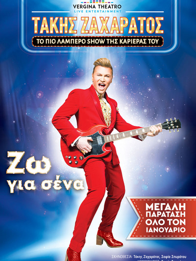 Ο Τάκης Ζαχαράτος στο μεταξύ συνεχίζει δυναμικά και επιτυχημένα στο Vergina Theatro στο Regency Casino της Θεσσαλονίκης, παίρνοντας παράταση για το εντυπωσιακό του σώου έως τις 27 Ιανουαρίου 2019. Τίτλος του. «Ζω για σένα». Μάλιστα ο πολυτάλαντος Τάκης Ζαχαράτος έχει επιμεληθεί και τα κείμενα & τα κοστούμια του σώου και συνσκηνοθετεί μαζί με την Σοφία Σπυράτου που υπογράφει τις χορογραφίες.