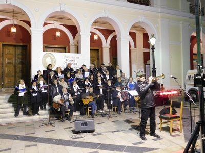 Στη συναυλία του Εμπορικού και Εισαγωγικού Συλλόγου Πατρών την Πέμπτη 6:00μμ μπροστά στο Δημοτικό θέατρο Απόλλων η εξαιρετική Χορωδία και Ορχήστρα «Belle Époque» του Παμμικρασιατικού Συνδέσμου Πατρών υπό την διεύθυνση του μαέστρου και τρομπετίστα κου Σακοράφα ενθουσίασε και συγκίνησε μικρούς και μεγάλους και καταχειροκροτήθηκε.