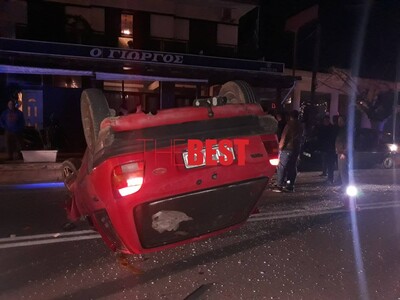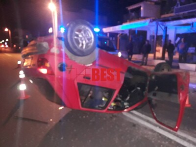 Αποτέλεσμα της σύγκρουσης και της ανατροπής του ενός οχήματος ήταν να τραυματιστεί -ευτυχώς ελαφρά- ο οδηγός του ενός αυτοκινήτου.