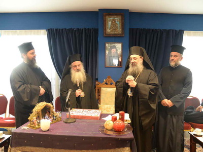 Μετά τήν Θεία Λειτουργία ὁ Θεοφιλέστατος ἐτέλεσε τήν Δοξολογία ἐπί τῇ εἰσόδῳ στό νέο ἒτος καί εὐλόγησε τήν δεξίωση πού παρετέθη στό πνευματικό κέντρο τοῦ Ναοῦ.