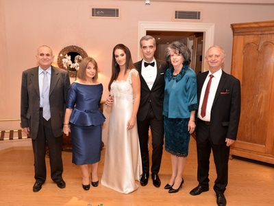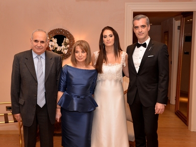 Ο γάμος έγινε στην Αθήνα, όπου το ζευγάρι ζει μόνιμα, με έντονη παρουσία από τον ιατρικό και τραπεζικό χώρο, καθώς η νύφη προέρχεται από γνωστή ιατρική οικογένεια της Πάτρας. Ευχές δέχονταν οι γονείς της νύφης Πολύκαρπος και Μπία Χριστοδουλίδη καθώς και η αδελφή της Ιωάννα, όλοι ιατροί.