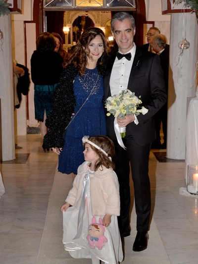 Το μυστήριο τελέστηκε στις 15 Δεκεμβρίου στον Ιερό Ναό Αγίου Νικολάου Γλυφάδας, με κουμπάρους του ζευγαριού, τον επιχειρηματία Δημήτρη Γέπη και την ιατρό- δερματολόγο Μαρία Γιαννοπούλου, ενώ ακολούθησε δεξίωση στο Margi Hotel της Βουλιαγμένης.