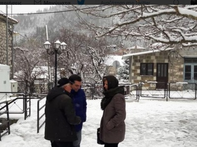 Για αυτό και στις φωτογραφίες που δημοσίευσε η υπουργός Προστασίας του Πολίτη Όλγα Γεροβασίλη, η οποία έλκει την καταγωγή της από την περιοχή, ο Αλέξης Τσίπρας και Μπέτυ Μπαζιάννα είναι με χοντρά μπουφάν και μπότες.