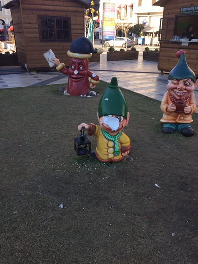 "Κακοποιήθηκαν" και φέτος τα χριστουγεννιάτικα διακοσμητικά στοιχεία που είχαν τοποθετηθεί στην πλατεία Γεωργίου για να πλαισιώσουν στη διάρκεια των εορτών τη φάτνη και τα σπιτάκια του χριστουγεννιάτικου χωριού της Πάτρας.