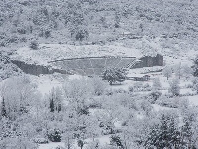 Ο αρχαιολογικός χώρος της Δωδώνης, με το εμβληματικό θέατρο, ντυμένα στα λευκά!Το χιόνι ξεπερνά τα είκοσι εκατοστά κάνοντας την περιοχή πραγματικά μαγευτική!