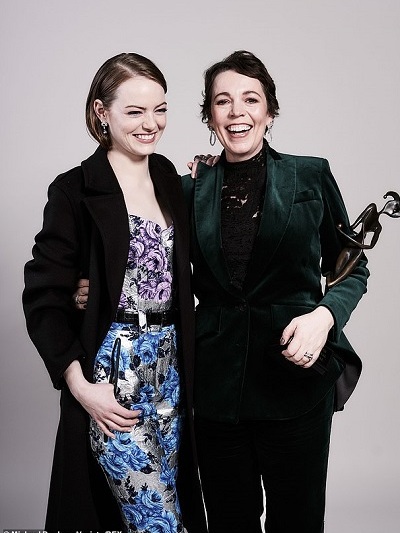 Οι δυο σταρ δήλωσαν με αφορμή την απονομή πολύ καλές φίλες, οπότε οι προκλητικές ερωτικές τους σκηνές στην ταινία δεν τις έκαναν να ντραπούν. Στην υπόθεση του φιλμ, στη βασιλική αυλή του 18ου αιώνα, δυο εξαδέλφες ανταγωνίζονται μέσω του σεξ να κερδίσουν την εύνοια της εύθραυστης βασίλισσας. Η Κόλμαν μάλιστα αποκάλυψε πως τοποθέτησε στα απόκρυφά της ένα σφουγγάρι για να διευκολύνει τη Στόουν στην «καυτή» τους σκηνή, ενώ το να φιλήσει την έτερη σταρ Ρέιτσελ Βάις ήταν «σαν να κερδίζει το λαχείο».