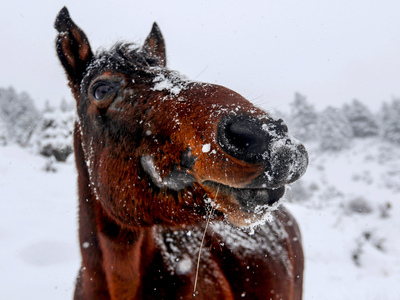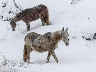 Εντυπωσιακή είναι η εικόνα άγριων αλόγων που δίνουν τη μάχη της επιβίωσης μέσα στα χιόνια . Είναι τα άγρια άλογα στη Σαμαρίνα, επιβιώνουν σε υψόμετρο 1.450 μέτρων κάτω από αντίξοες συνθήκες.