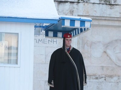Χιόνια στον Άγνωστο Στρατιώτη- Με κάπες οι Εύζωνοι και με τζιπ η αλλαγή της Προεδρικής Φρουράς