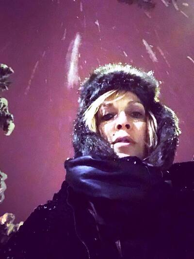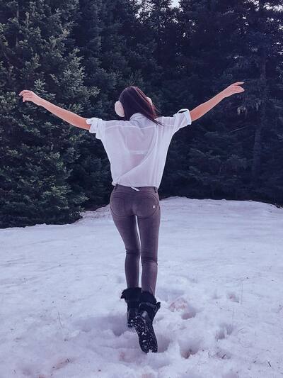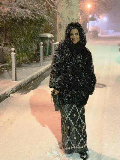 Η Σοφία Παυλίδου ποζάρει στο χιονισμένο δρόμο